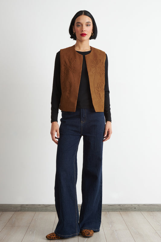 Vest Tipo Gamuza Bordado Khaki