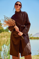 Chaqueta Tipo Gamuza Cuello Ecocuero Café