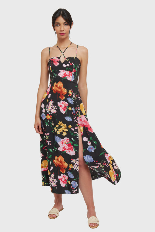 AgotadoVestido Largo Floral Tajo Negro