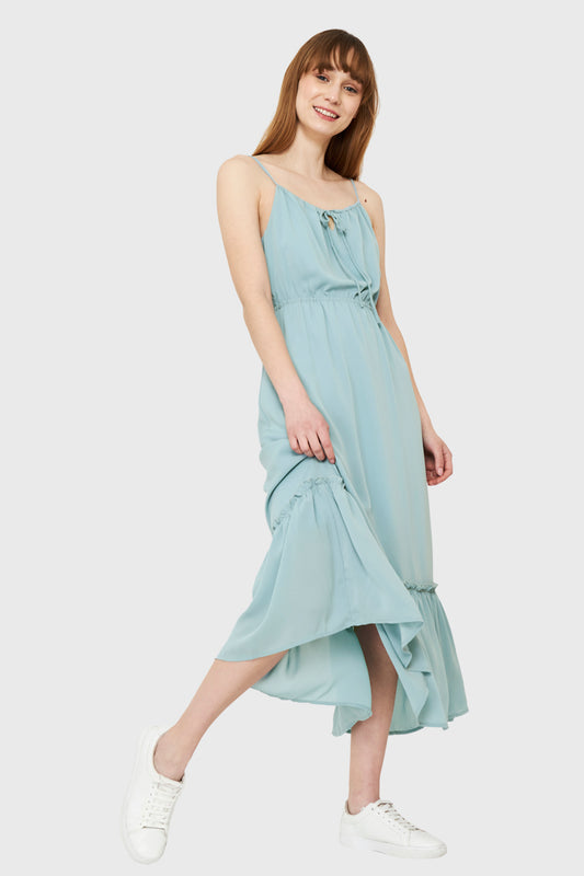 AgotadoVestido Largo Volante Celeste