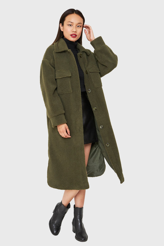 AgotadoAbrigo Teddy Bolsillos Oliva