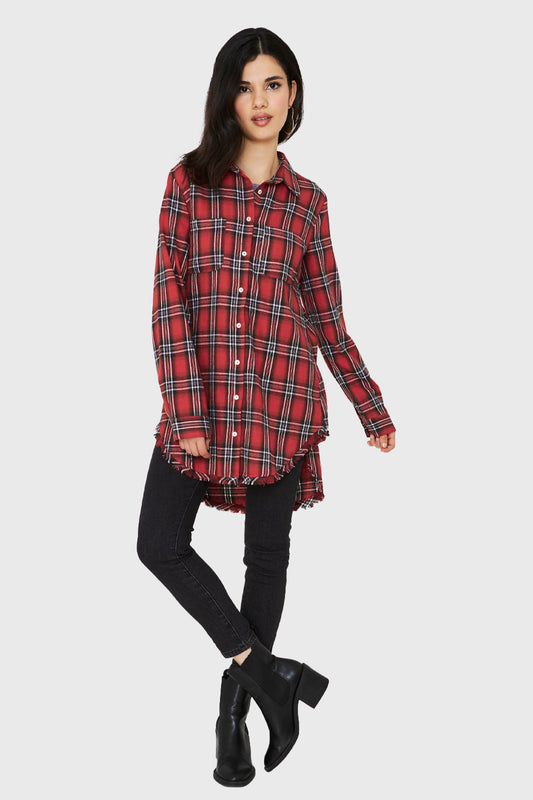 AgotadoCamisa Cuadrillé Flecos Rojo