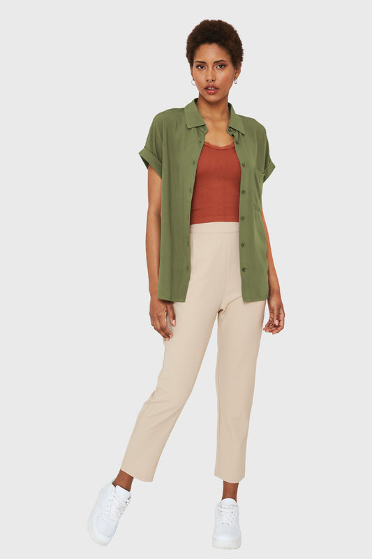 Camisa Manga Corta Con Dobladillo Oliva