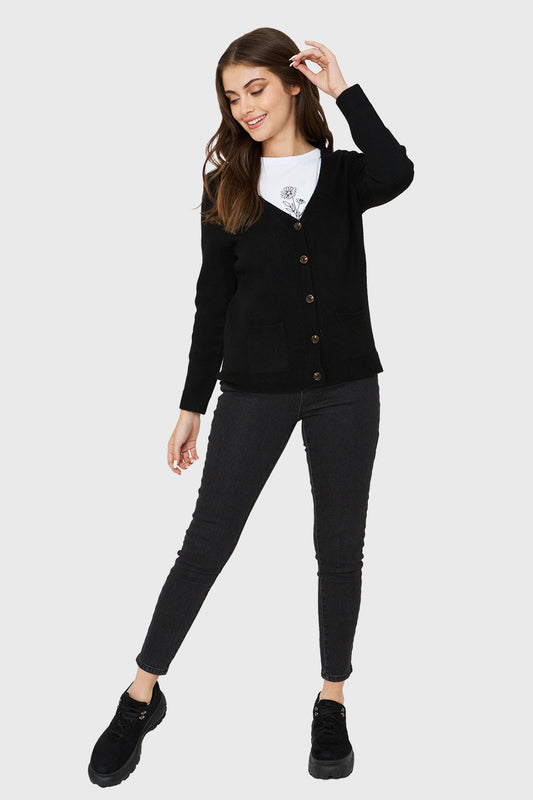 Cárdigan Abotonado Bolsillos Negro