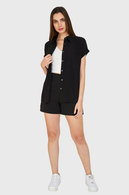 Camisa Pliegues Cintura Negro