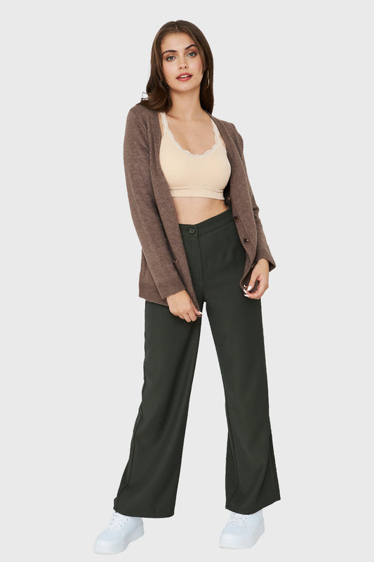 Cárdigan Abotonado Bolsillos Café