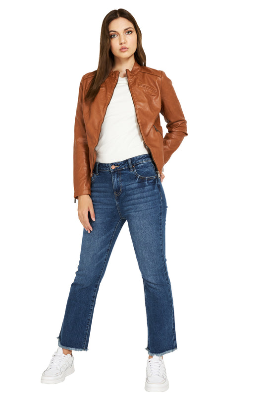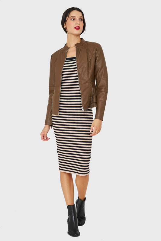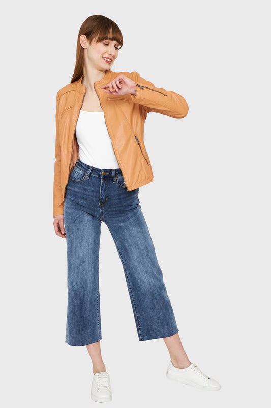 Chaqueta Ecocuero Cuello Mao Camel