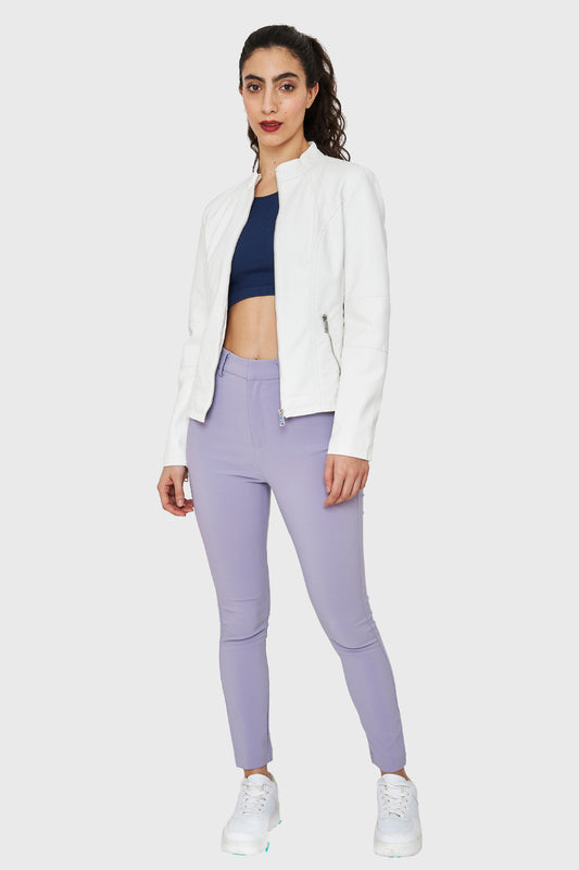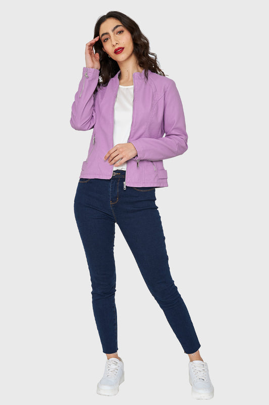 Chaqueta Cuello Mao Ecocuero Lila