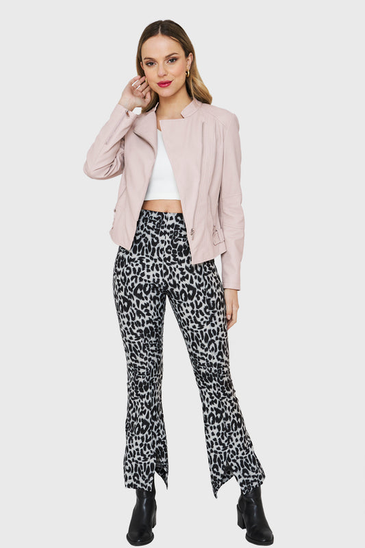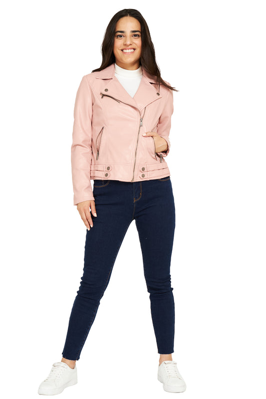 Chaqueta Ecocuero Estilo Biker Rosado
