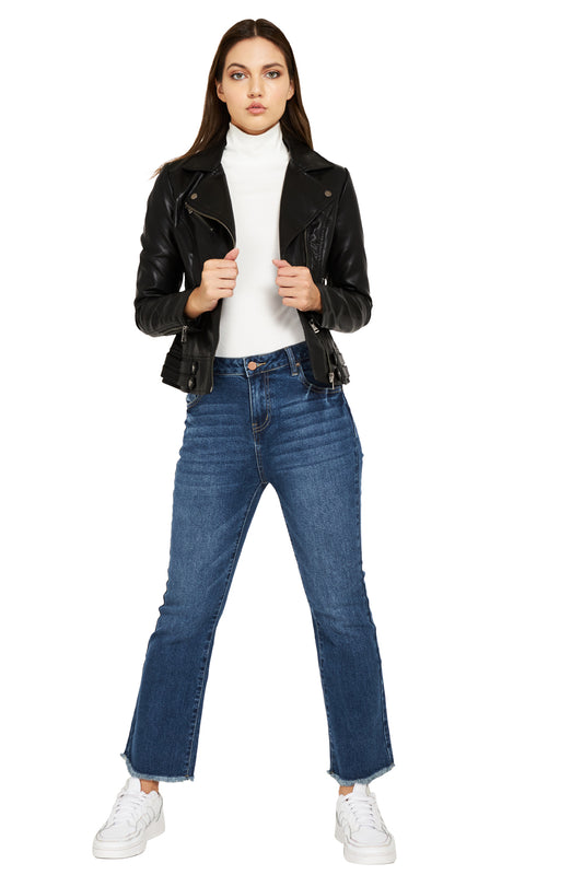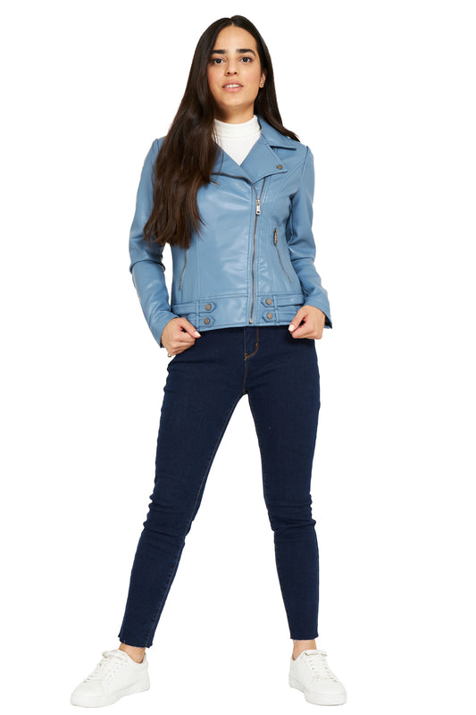 Chaqueta Ecocuero Estilo Biker Celeste
