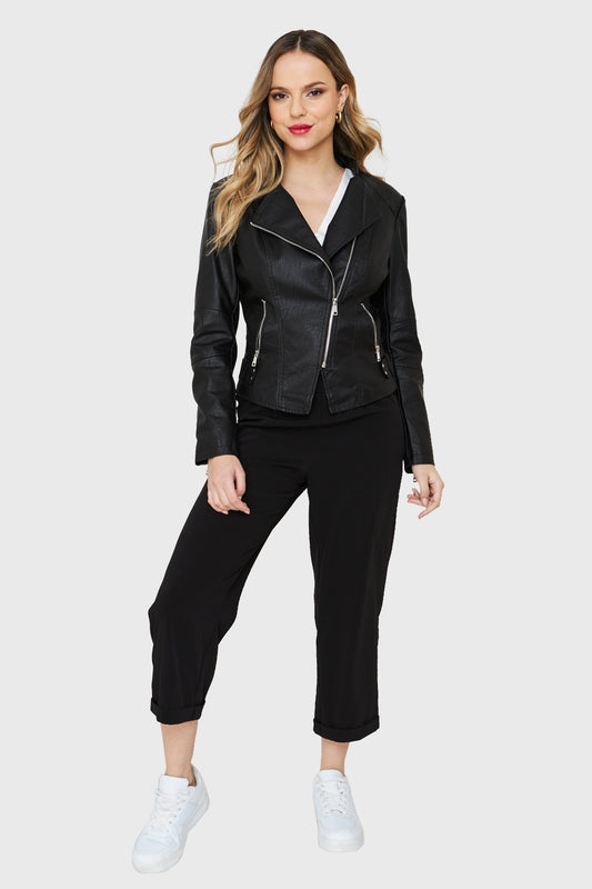 Chaqueta Ecocuero Estilo Biker Negro