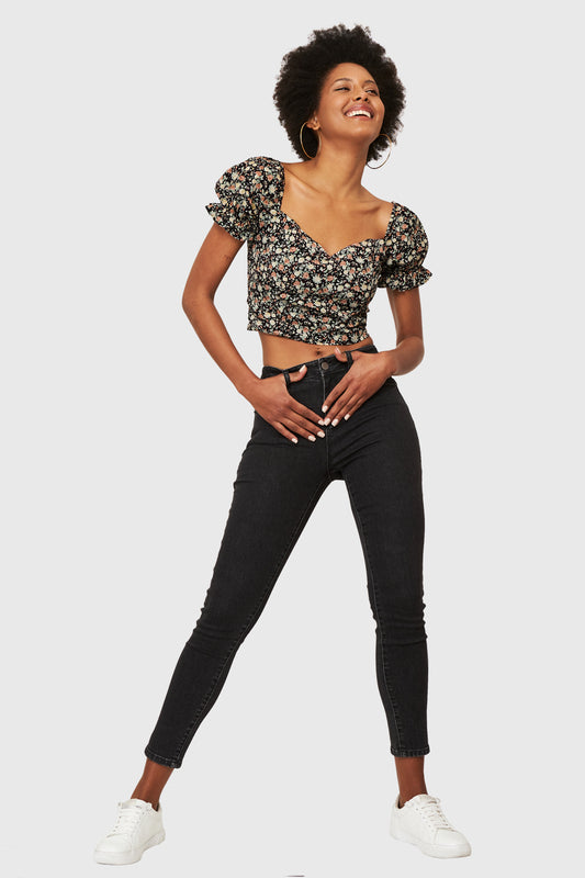 AgotadoCrop Top Tejido Rayas Hilo Negro