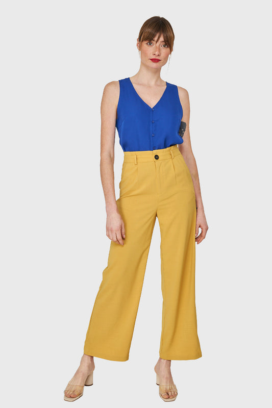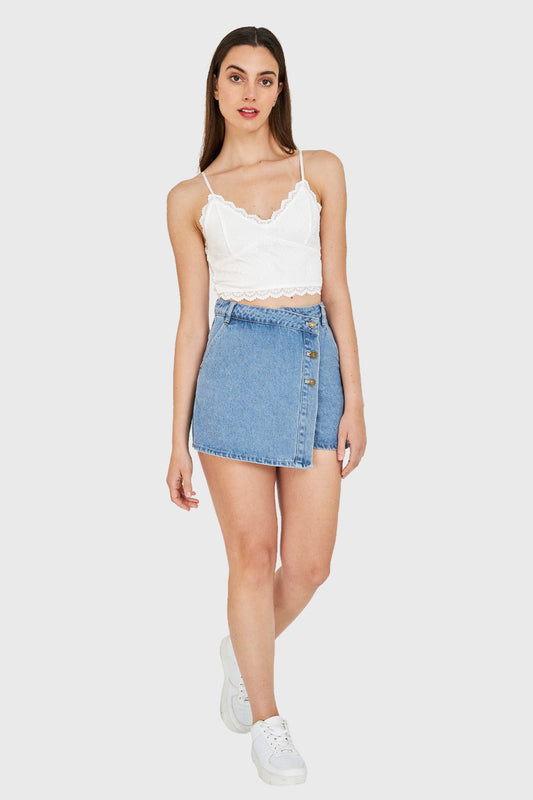 Mini Falda Ecocuero Botones Decorativos Mostaza