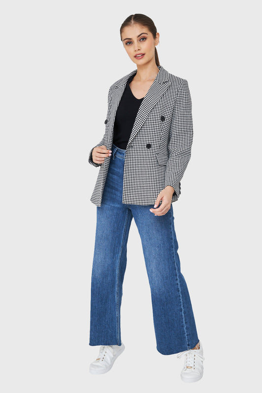 Blazer Cruzado Pied De Poule Blanco/Negro