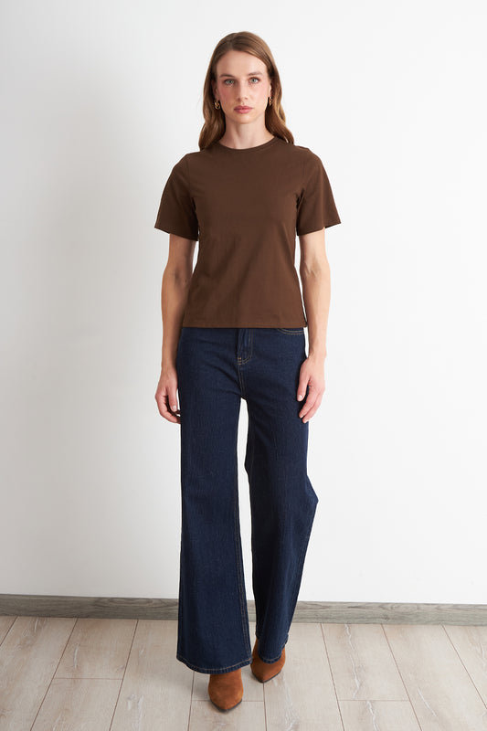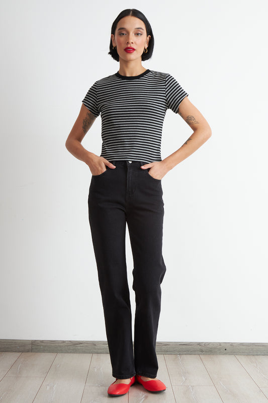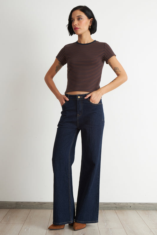 Polera Básica Cuello Redondo Líneas Azul Marino