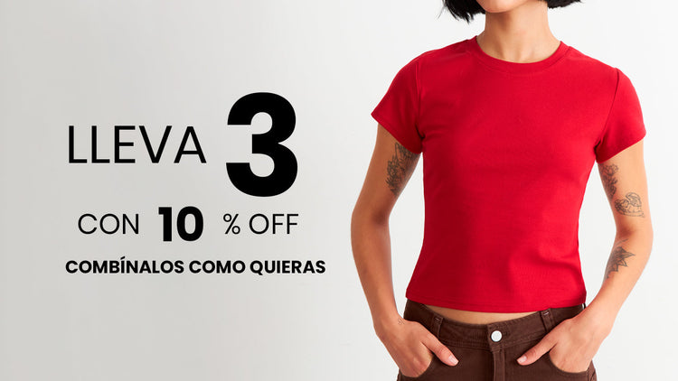 Lleva desde 3 básicos y obten 10% OFF en cada uno. Combina tallas, colores y modelos como tú quieras.