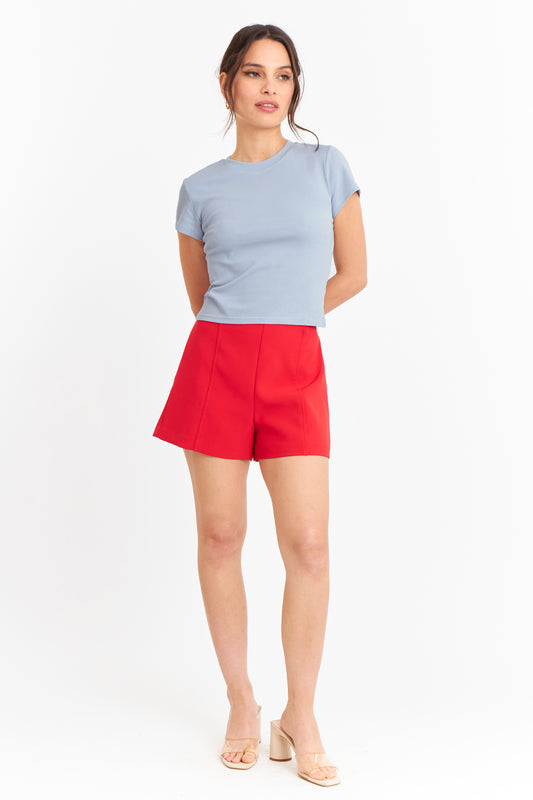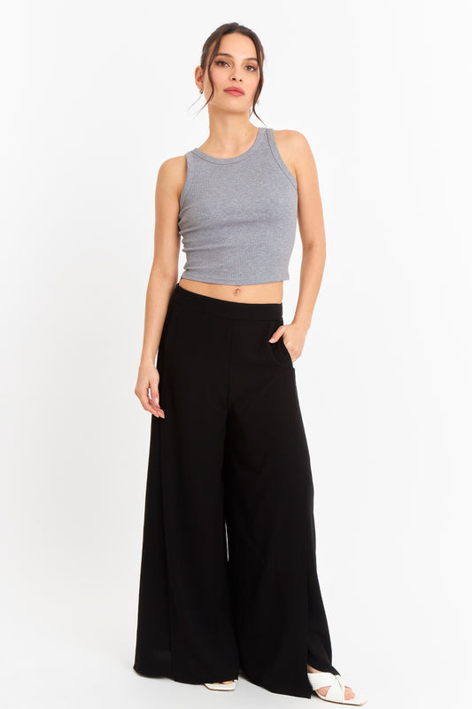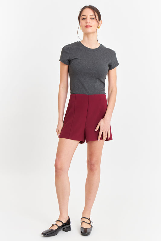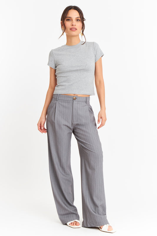 Polera Básica Cuello Redondo Líneas Gris Claro