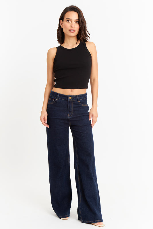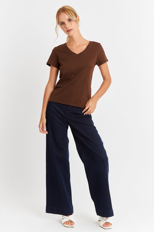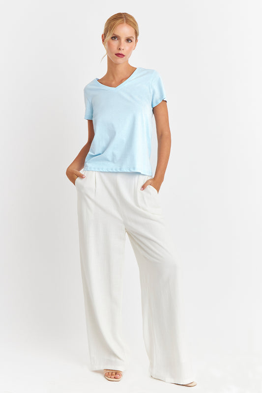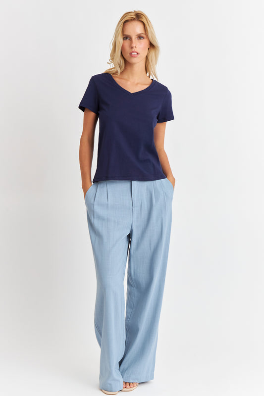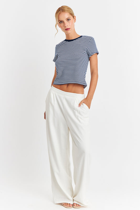 Polera Básica Cuello Redondo Líneas Azul Marino