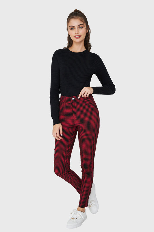 Calza Skinny Vichy Con Cierre Blanco/Negro