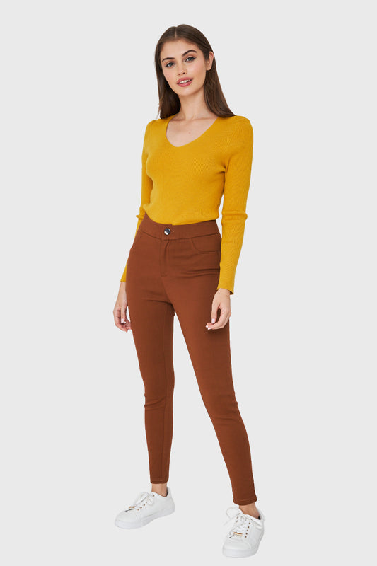 Calza Skinny Vichy Con Cierre Azul/Negro