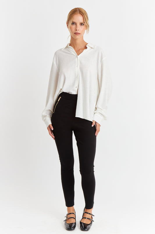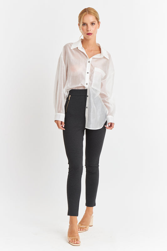 Calza Skinny Vichy Con Cierre Blanco/Negro
