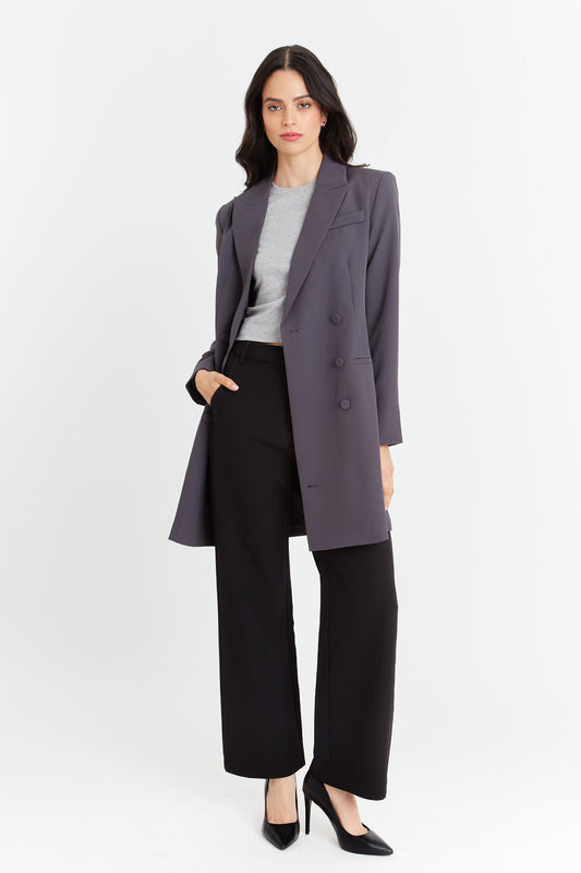 Blazer Entallado Manga Drapeada Morado