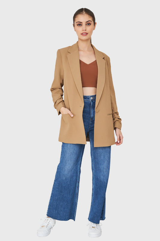 Chaqueta Cuello Camisero Ecocuero Oliva