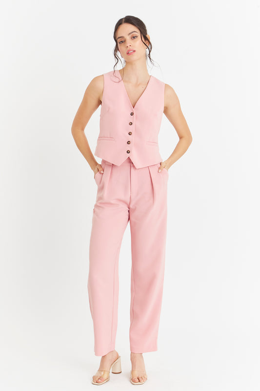 Blazer Manga 3/4 Ajustada Con Pliegues Rosado