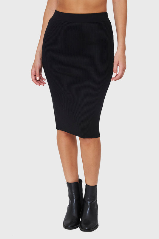 Falda Midi Elasticada Negro