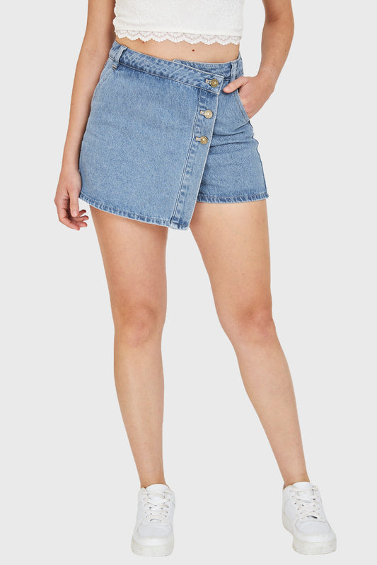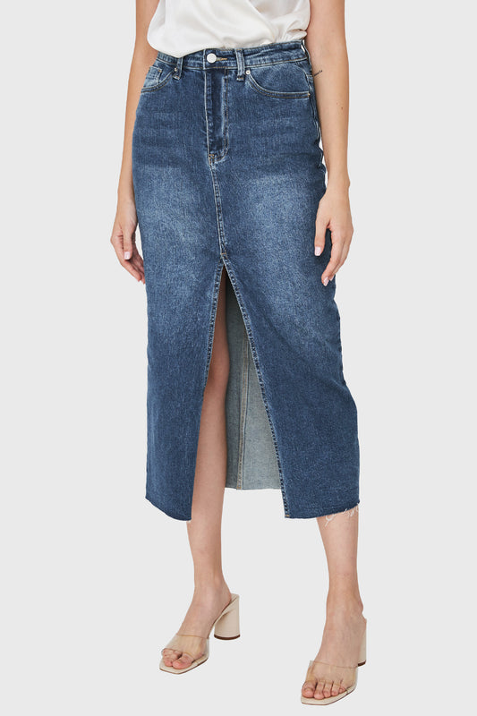 Falda Denim Tajo Frontal Azul Medio