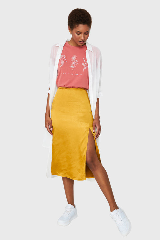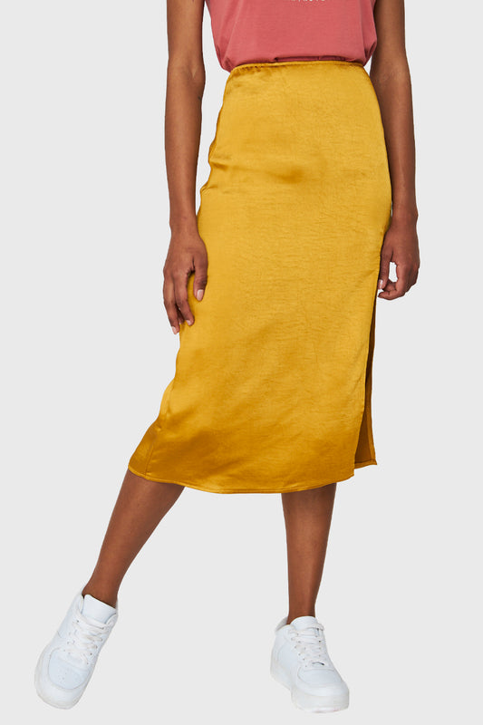 Falda Midi Tipo Satín Mostaza
