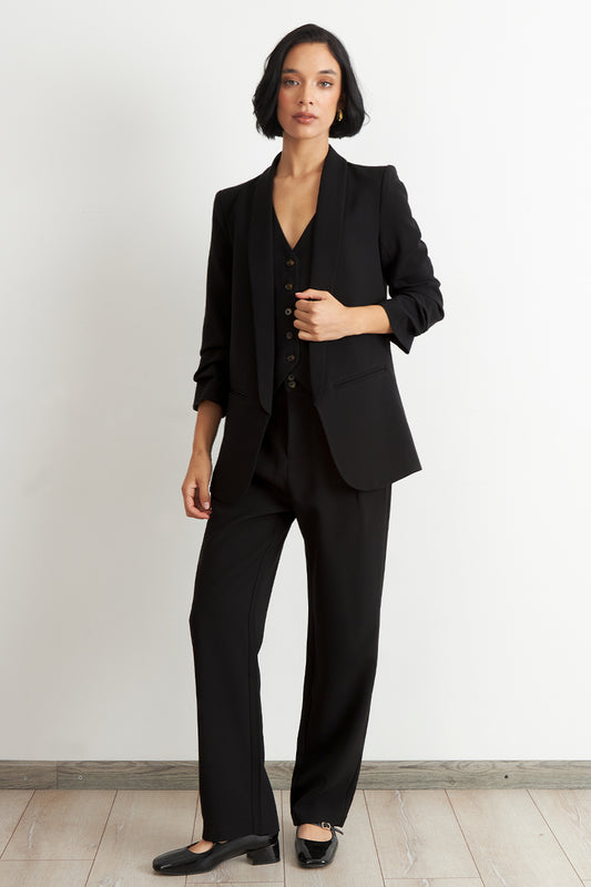 Blazer Manga 3/4 Ajustado con Solapas Negro