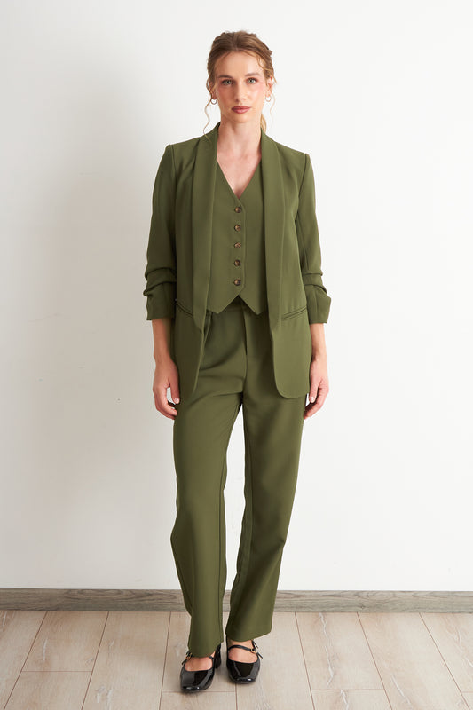 Blazer Manga 3/4 Ajustado con Solapas Oliva
