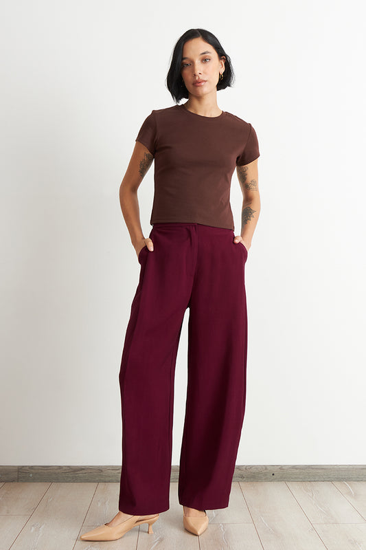 Pantalón de Pierna Recta Raya Diplomática Burdeo