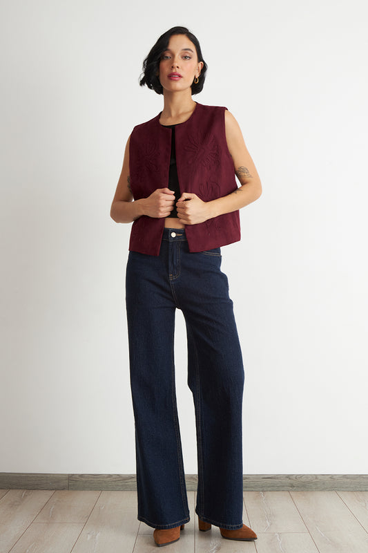 • Vest Tipo Gamuza Bordado Burdeo