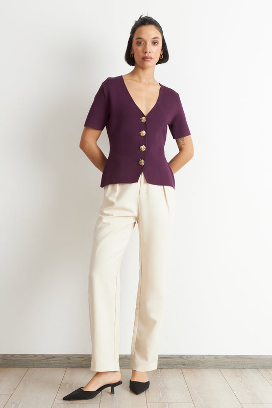 • Polera Hilo Cuello V Botones Morado