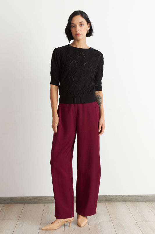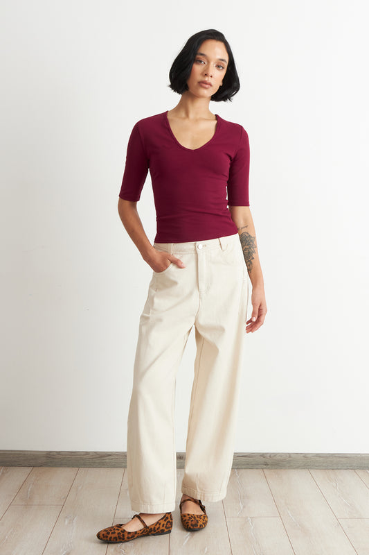 Polera Manga Corta Cuello Tipo U Burdeo