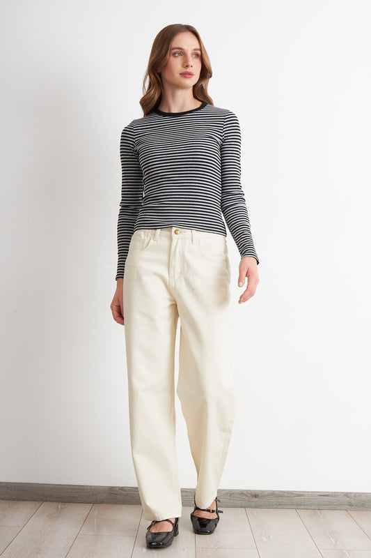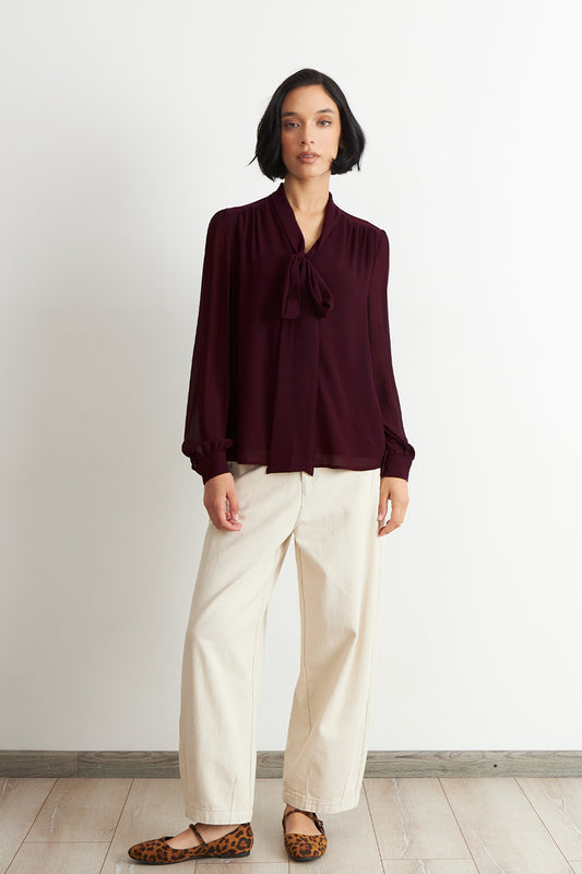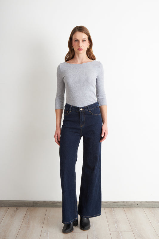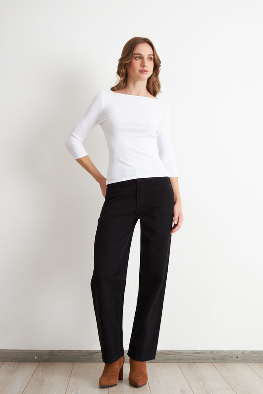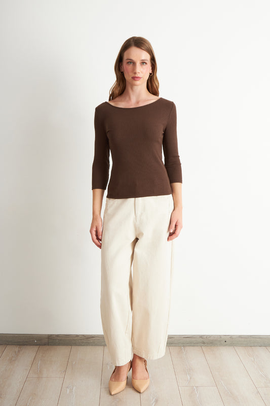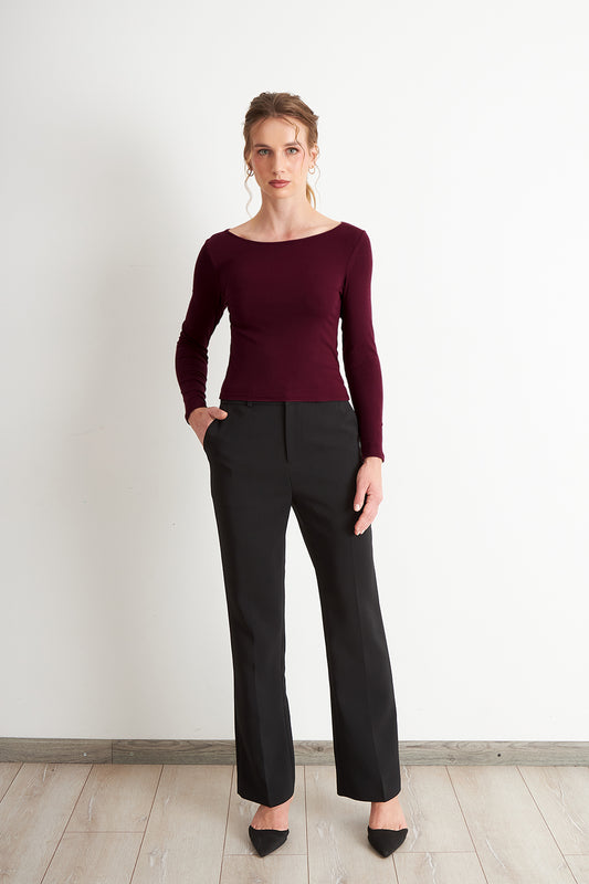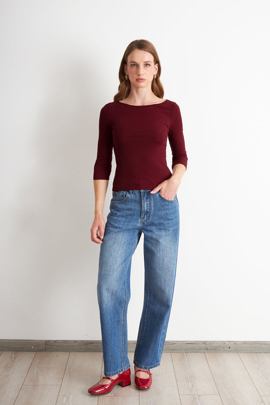 • Polera Manga 3/4 Cuello Bote Burdeo