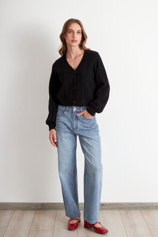 • Cárdigan Manga Globo Negro