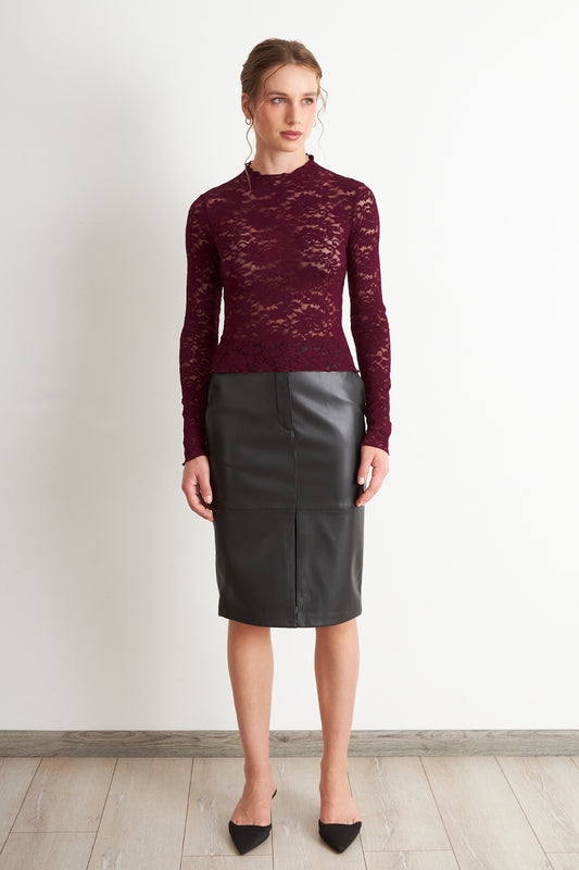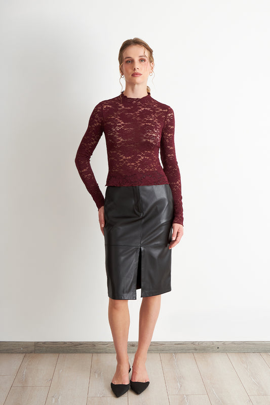 Polera Encaje Cuello Alto Burdeo