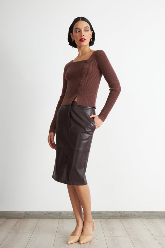 Falda Midi Ecocuero Café