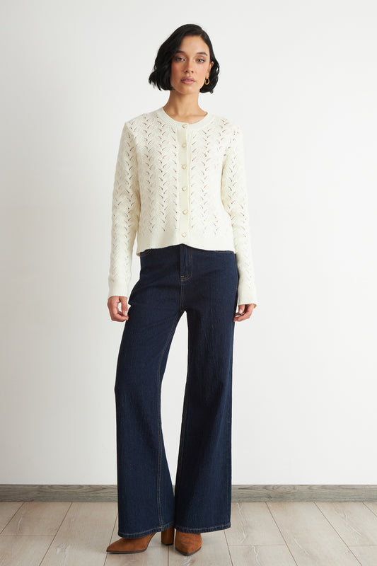 Cárdigan Calado Cuello Redondo Blanco