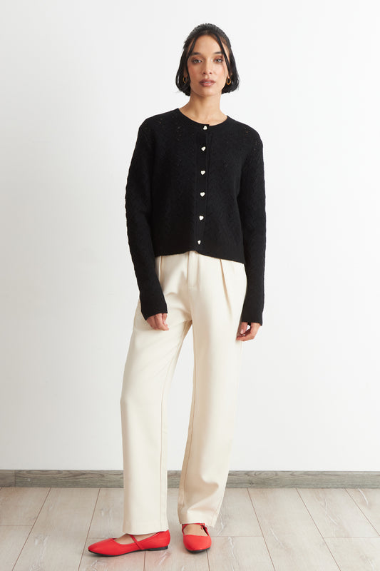 Cárdigan Calado Cuello Redondo Negro