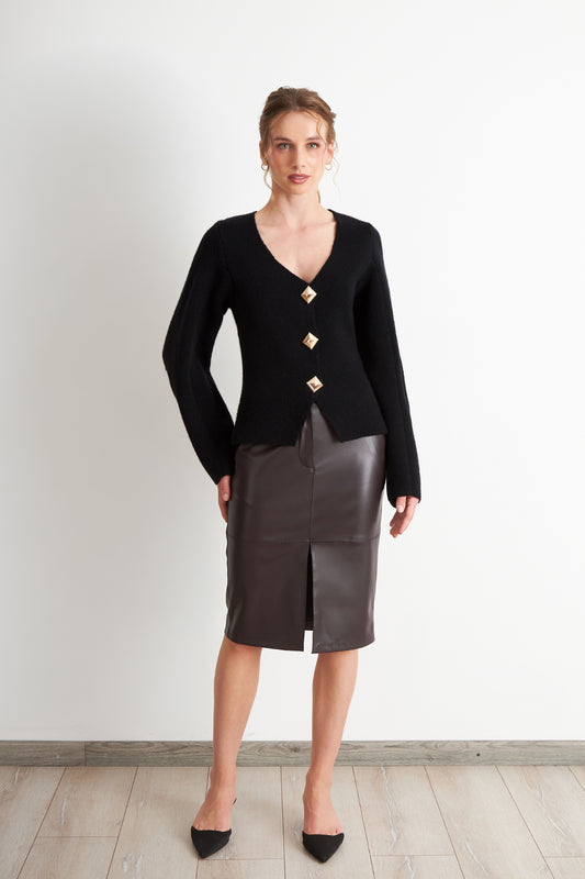 • Falda Midi Ecocuero Negro