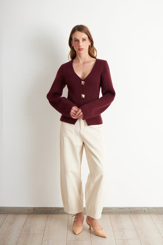 Cárdigan Manga Globo Ladrillo