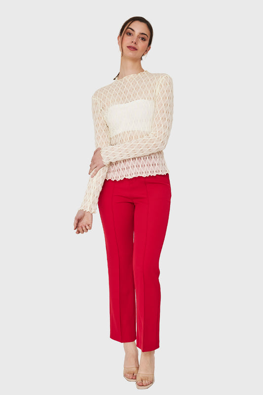 Polera Manga Larga Cuello Camisero Blanco Invierno