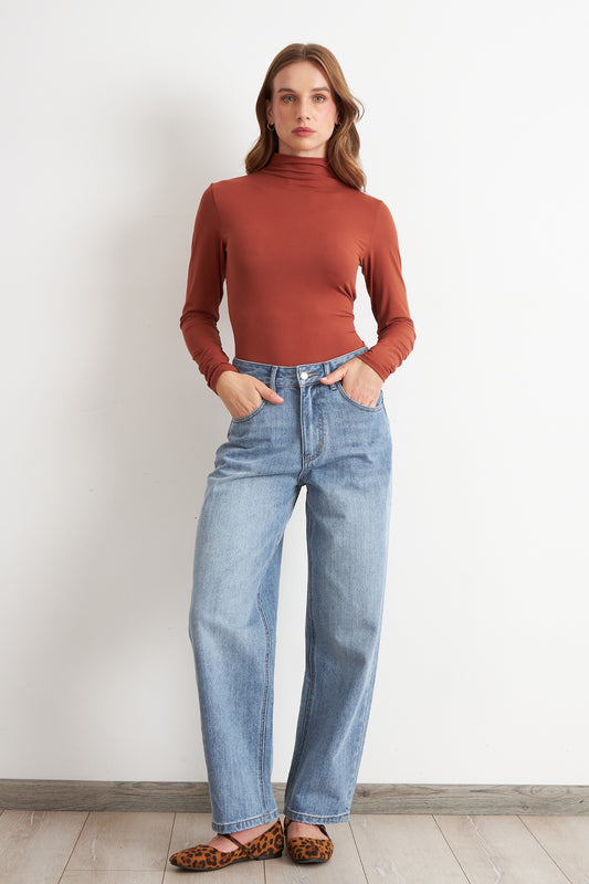 Polera Manga Larga Cuello Alto Óxido