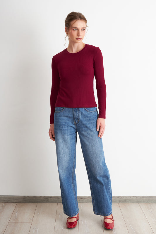 Polera Manga Larga Burdeo