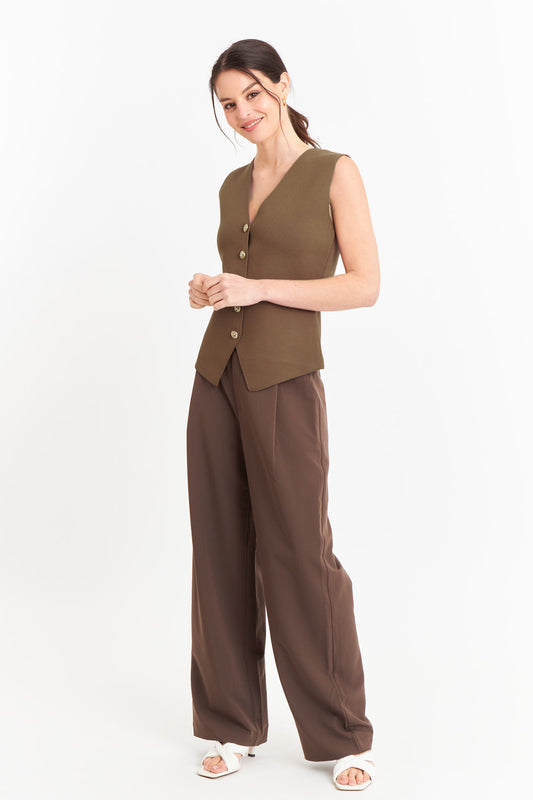Gilet Largo con Botones Café