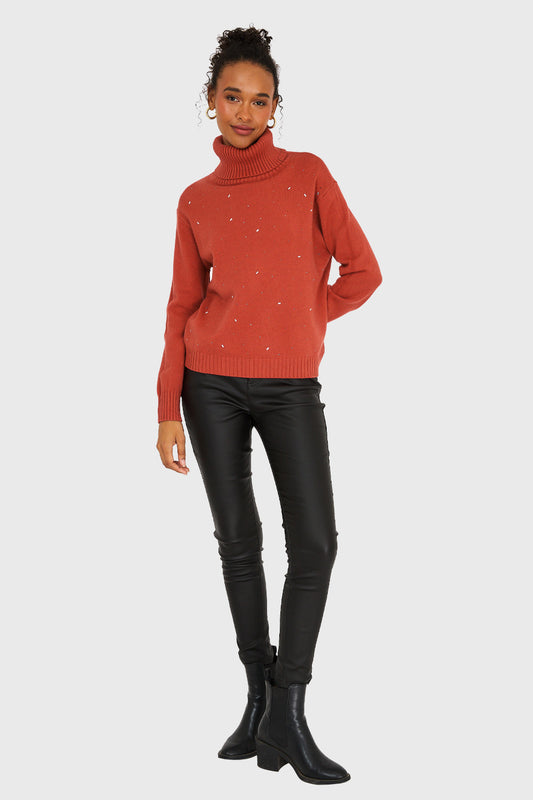Sweater Cuello Beatle Strass Óxido